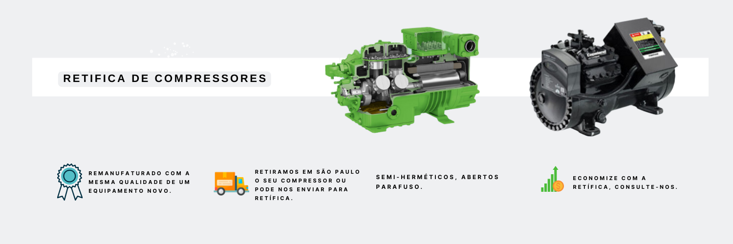 Além de remanufaturados, somos revenda de Compressores NOVOS Semi-Hermético, Parafuso, Hermético Scroll, e alternativo das mesmores marcas.